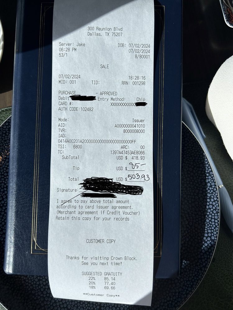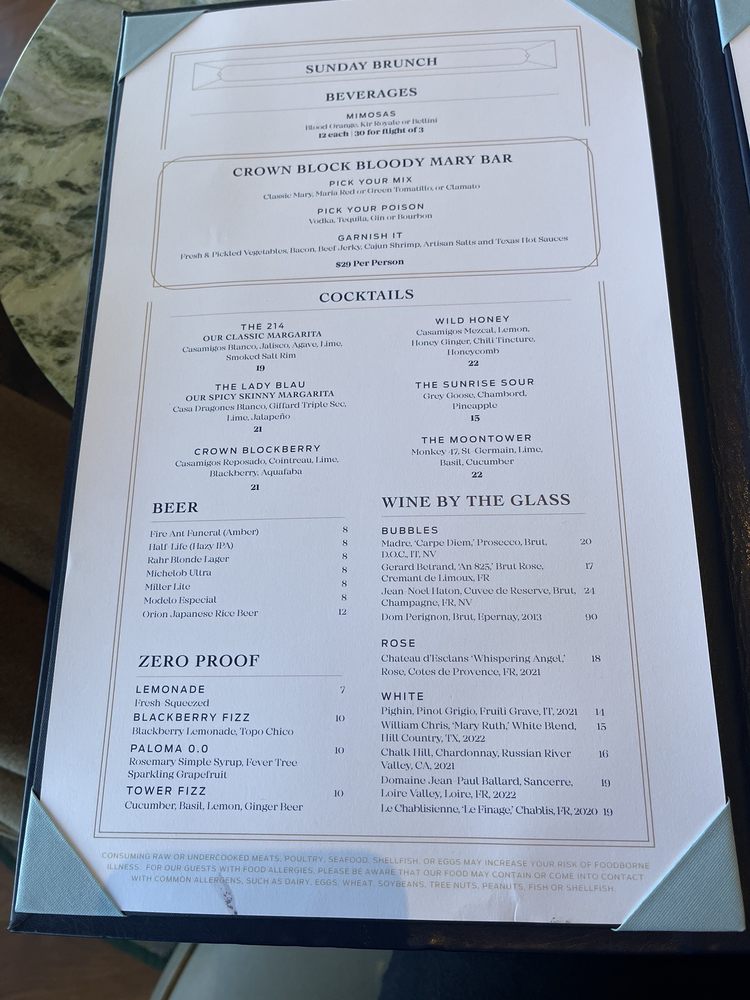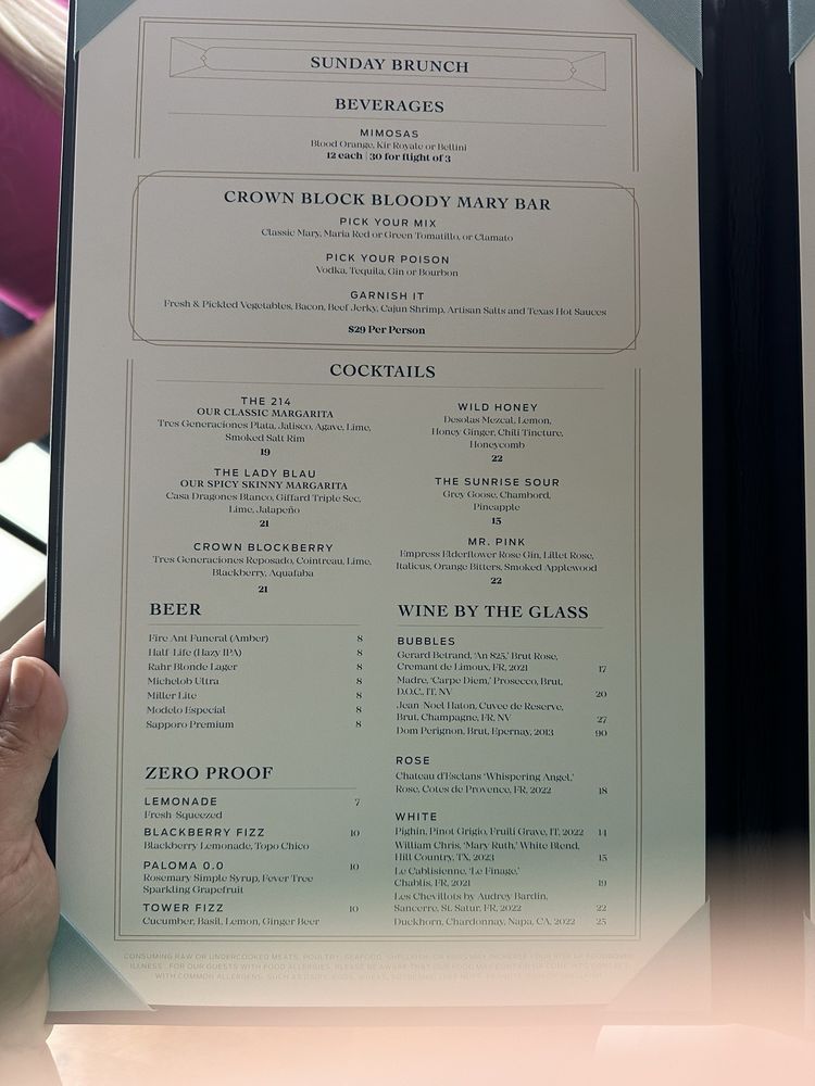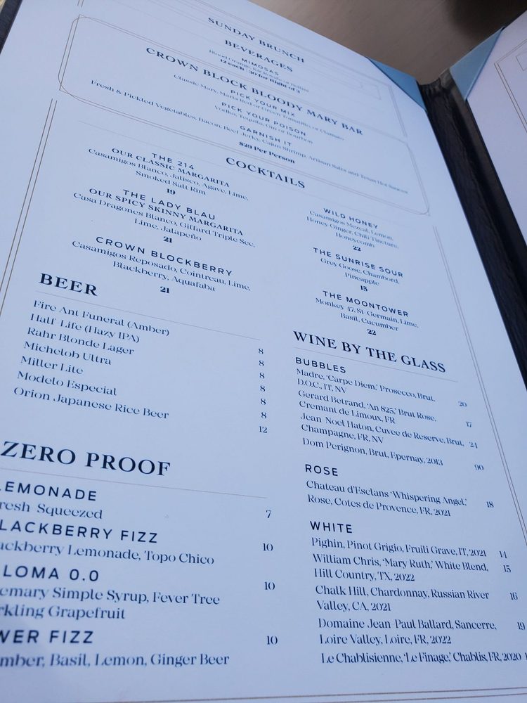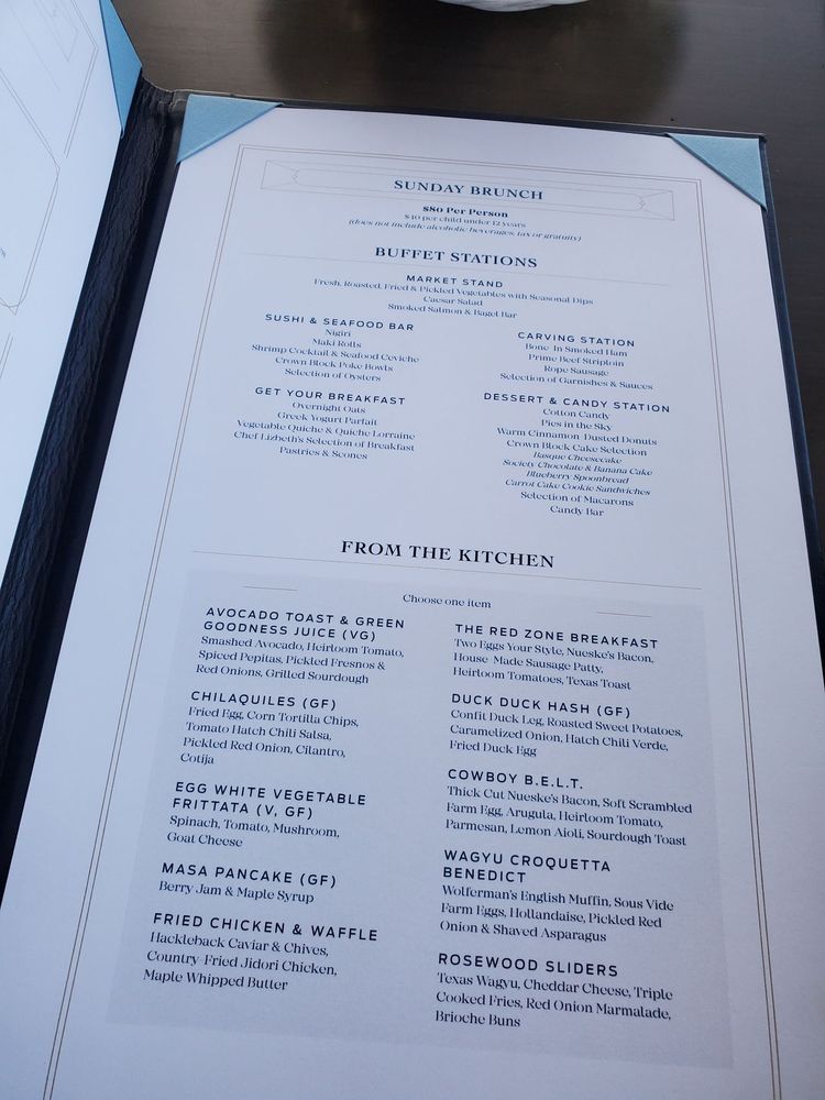 Crown Block in Dallas offers a upscale dining experience with diverse menu options. The restaurant is known for their amazing brunch buffet, attentive staff, and stunning views. Customers praise the friendly service, great food, and elegant atmosphere. The seafood tower and wagyu croquettes are recommended dishes. The Sunday brunch, priced at $85 per person, offers an entree choice and access to an all-you-can-eat buffet. Crown Block boasts a full bar, private dining, and outdoor seating options with heated and covered areas. While some customers mention higher prices, the overall consensus is positive, with excellent food quality and memorable dining experiences. For a trendy, romantic, and upscale dining experience, Crown Block in Dallas is a top choice.